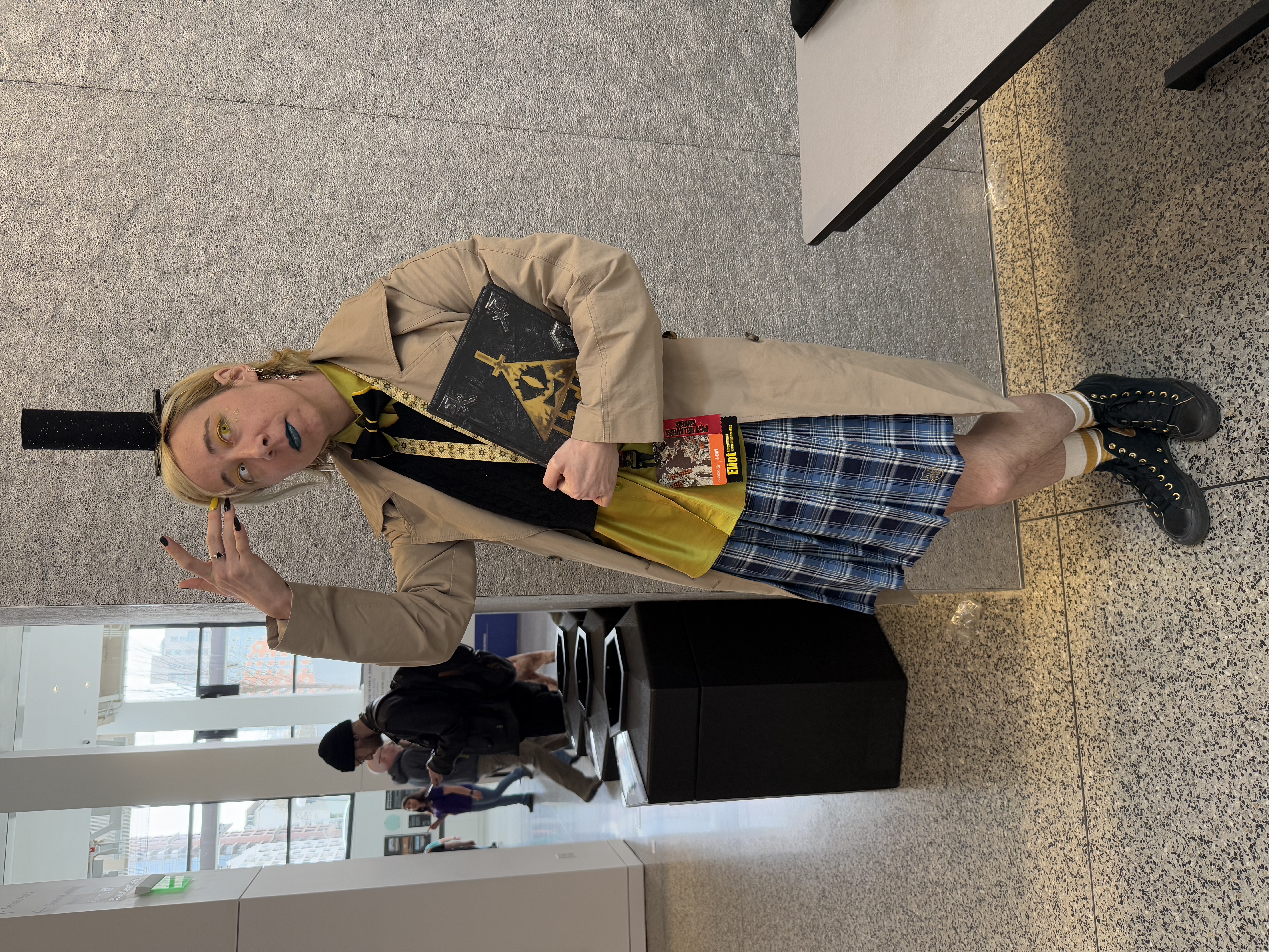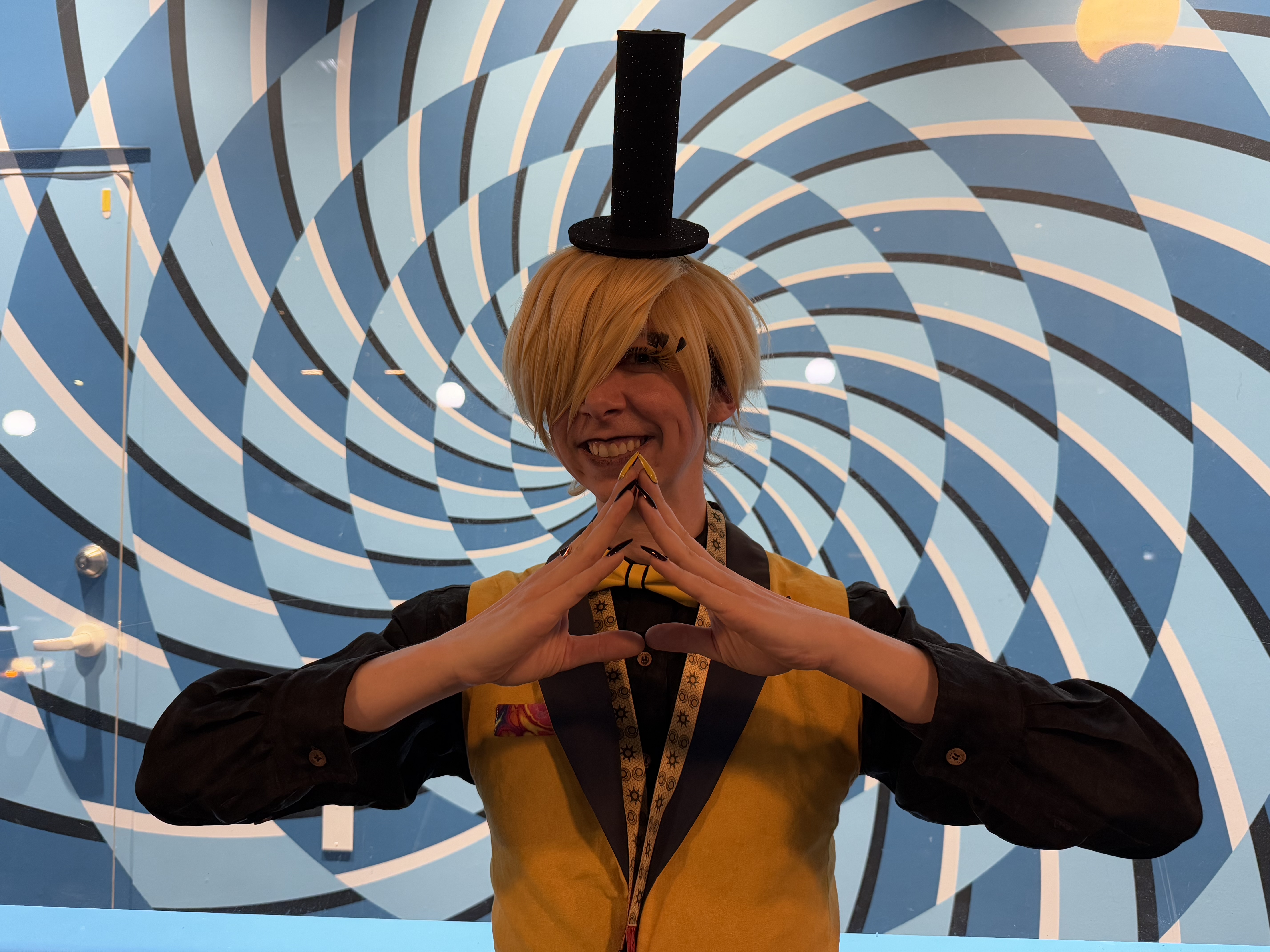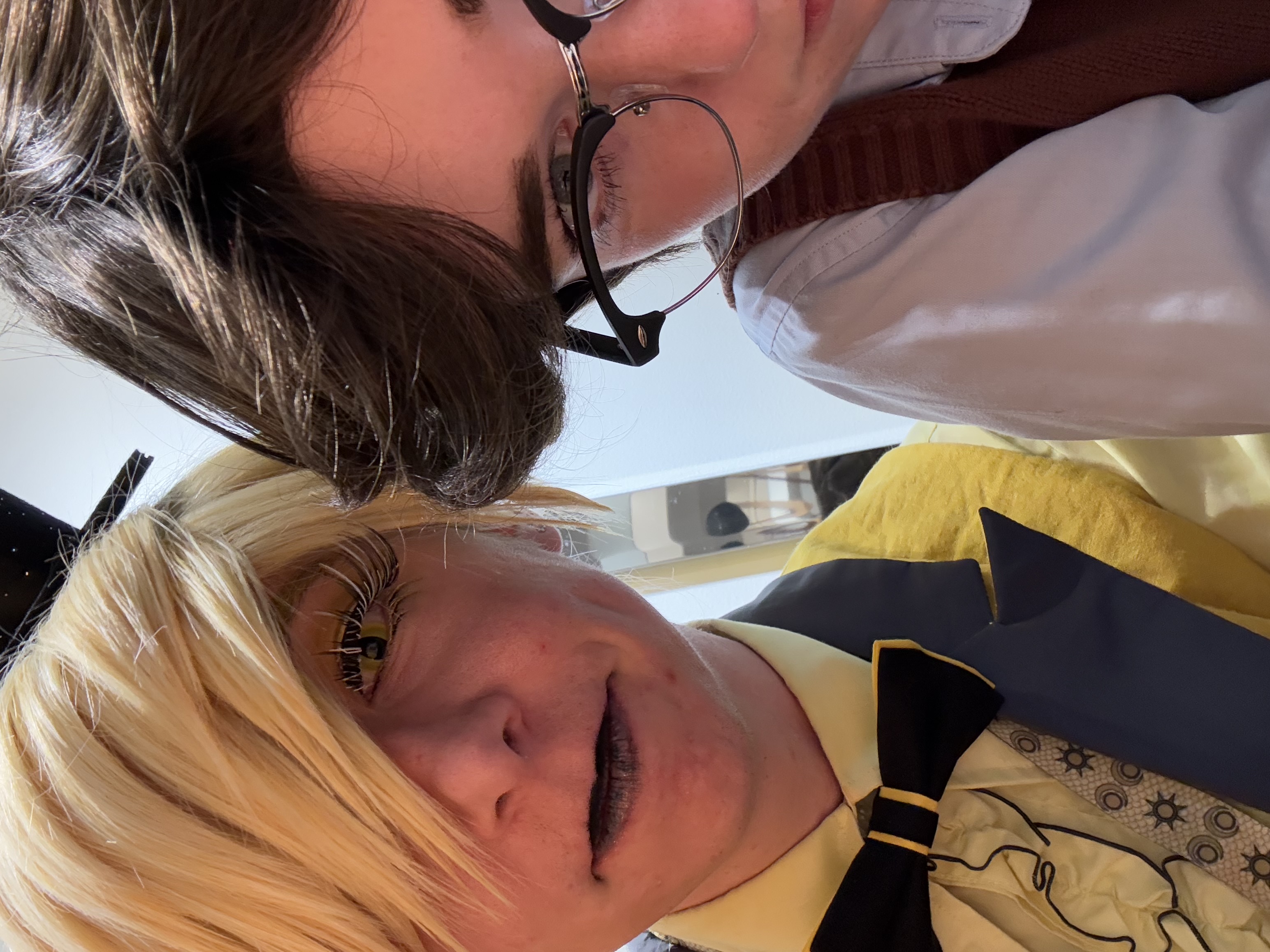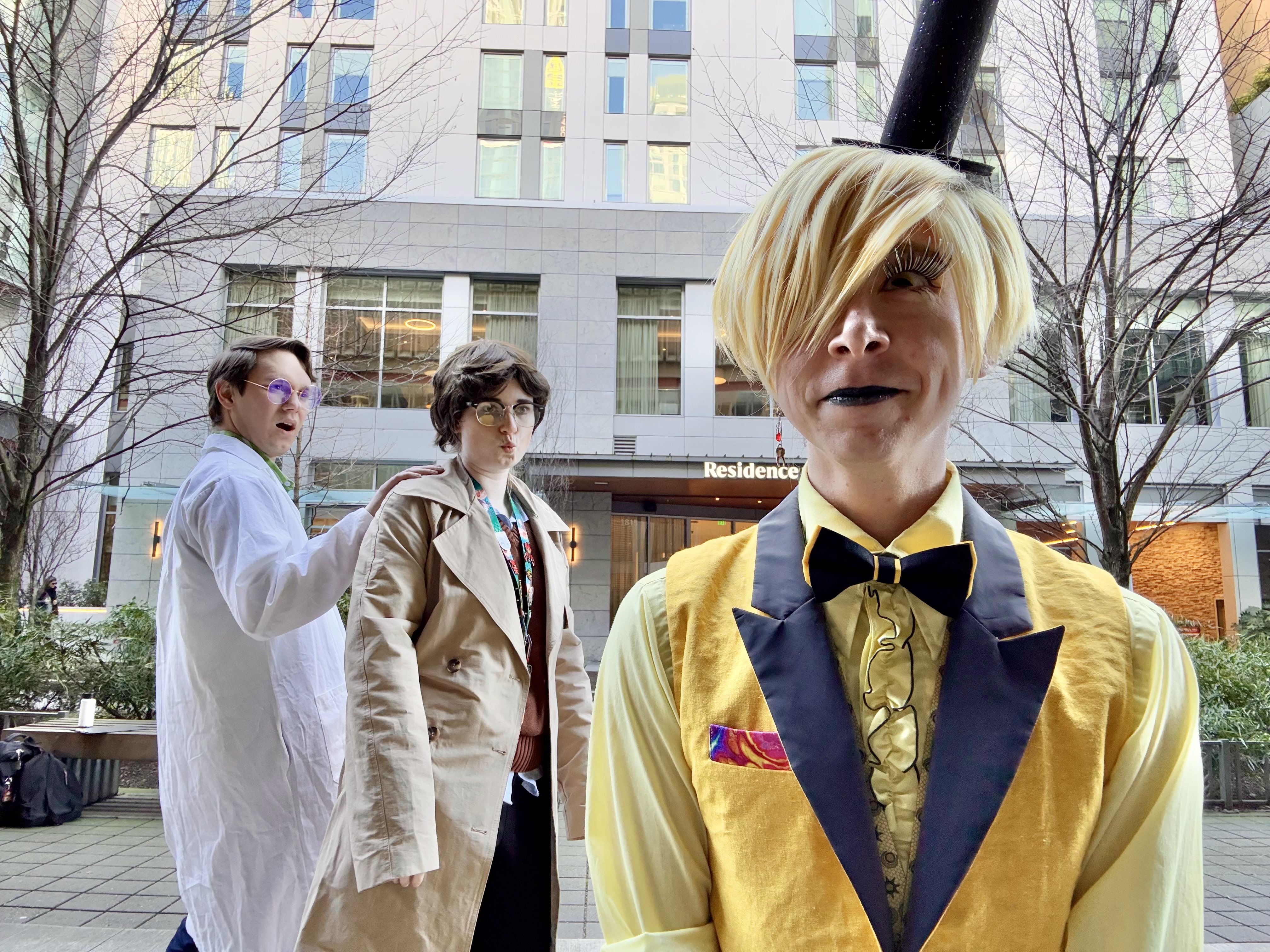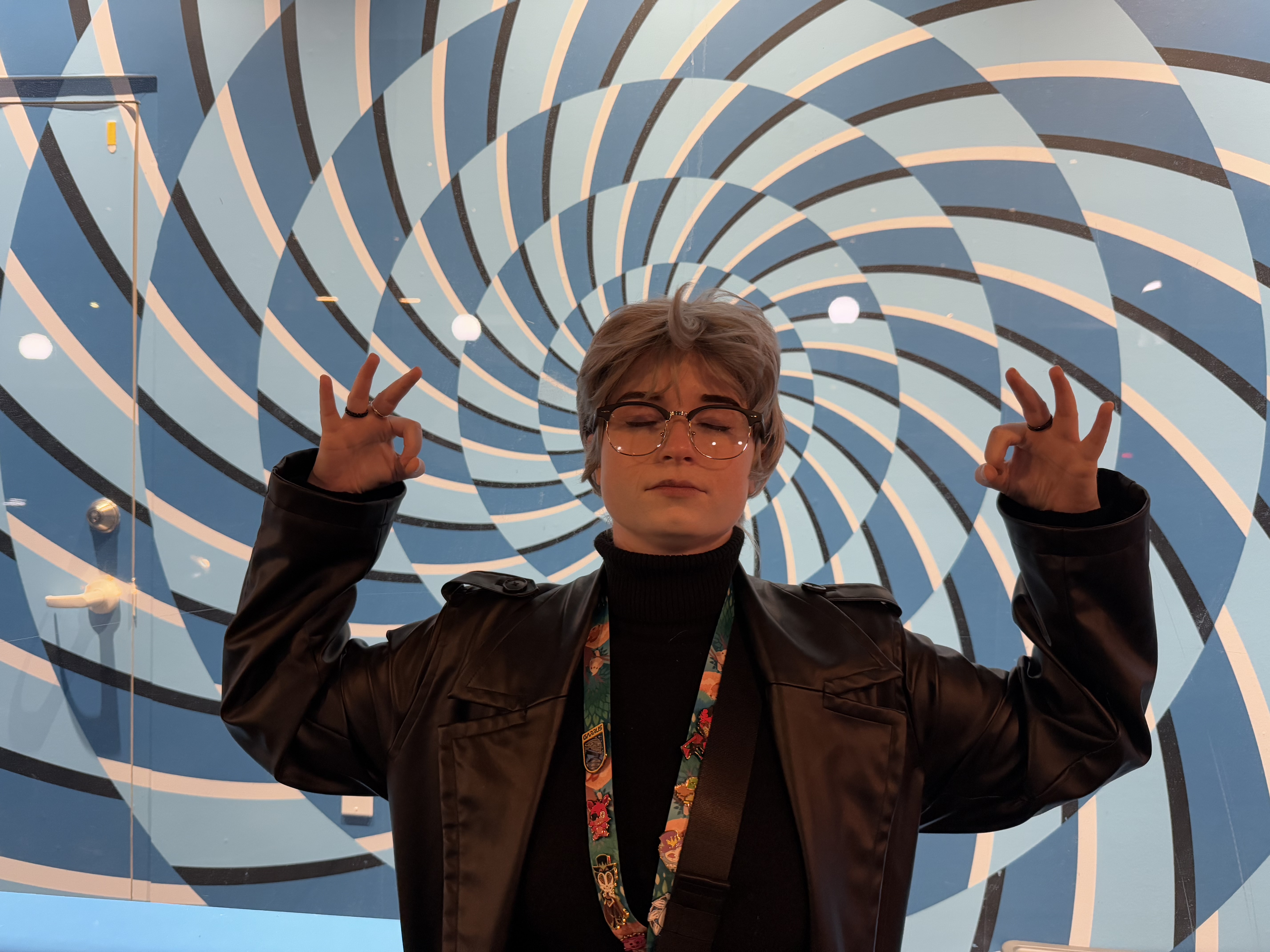 With such a simple character design to start with I wanted to make sure I capture the key elements to make my own design distinctively and clearly Bill: triangles, yellow and black, top hat, bow tie, one eye, eyelashes, brick pattern. I decided on tumblr-esque top hat and tails look but with a vest so that I could replicate the yellow body and black arms. I liked the sweeping bangs covering the eye, and the mini top hat. I decided to focus most of my efforts on creating the custom vest, with a relatively simple (bought not sewn) base yellow/black outfit. I wanted to include blue or iridescent or rainbow/neon elements as well, for the Weirdmaggedon/alternate dimension imagery he's associated with even if these are not directly included in his design. To that end I looked for photoreflective fabric to try out for certain elements. I found a great melty rainbow swirl fabric as well, that looked JUST like the Weirdmageddon rift. Once I got those and a nice color of plain yellow cotton, I had my design and my main materials ready to go!