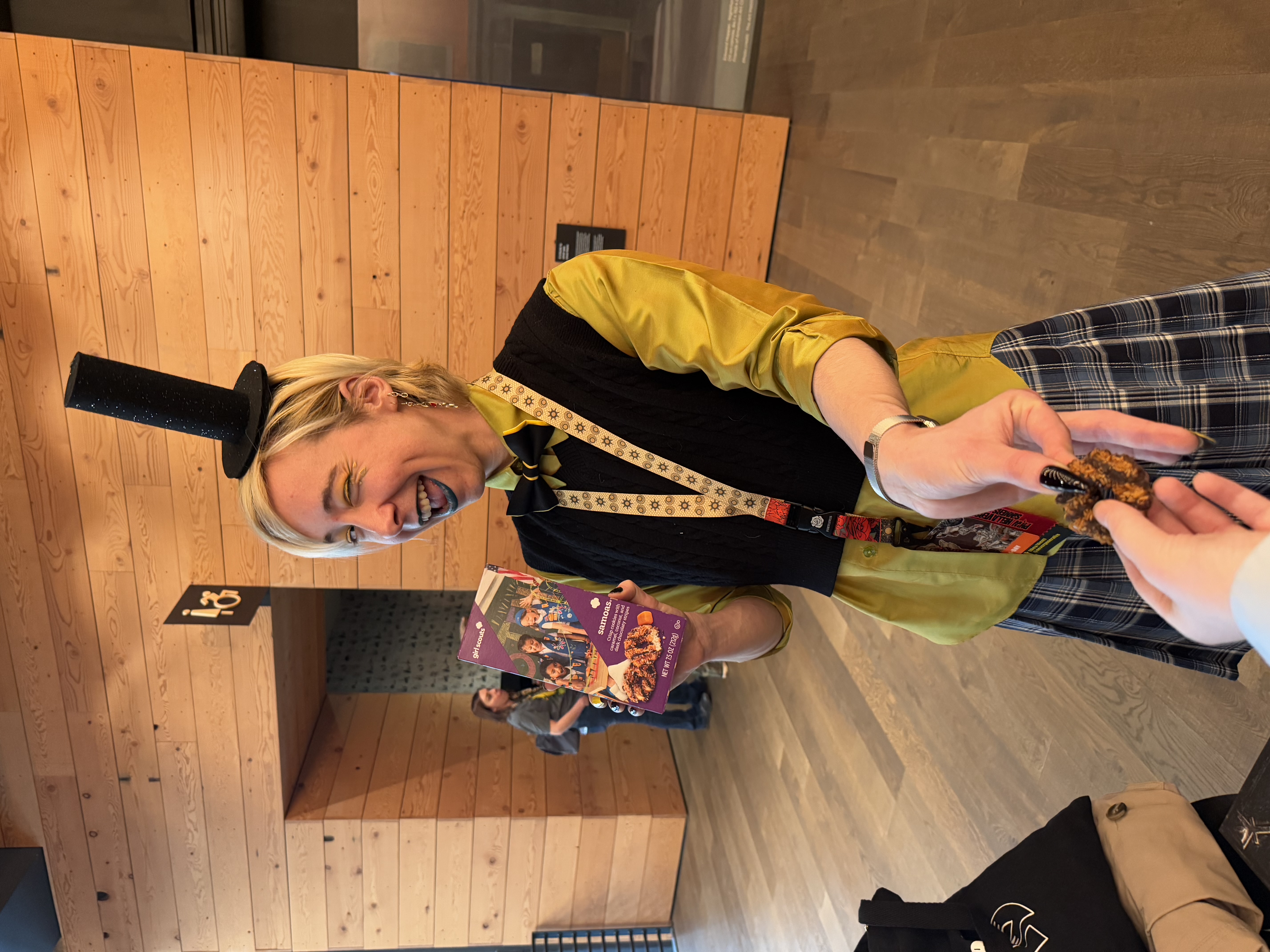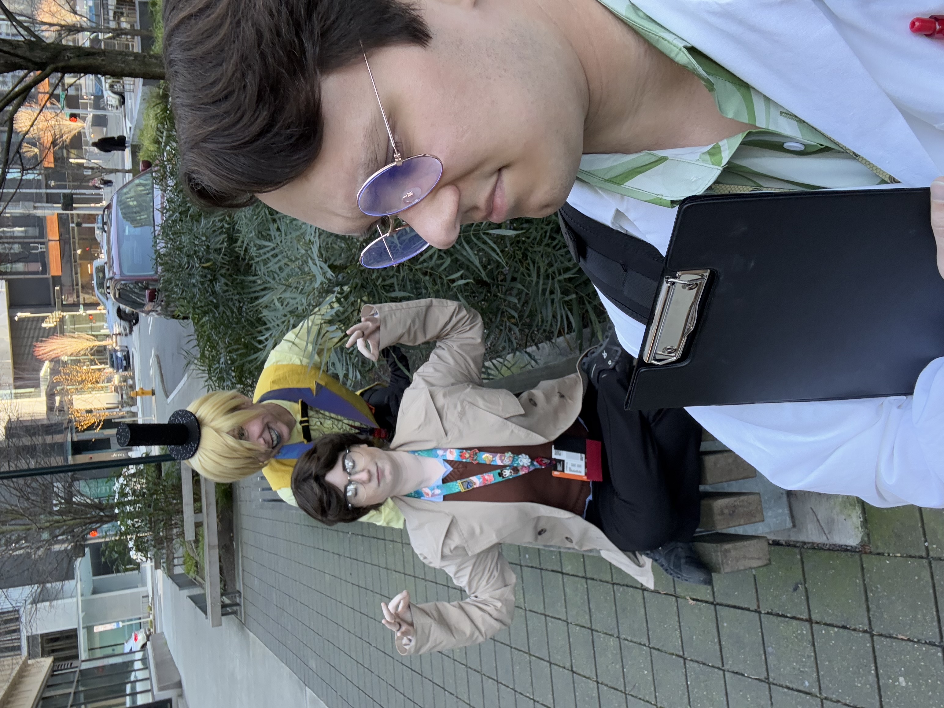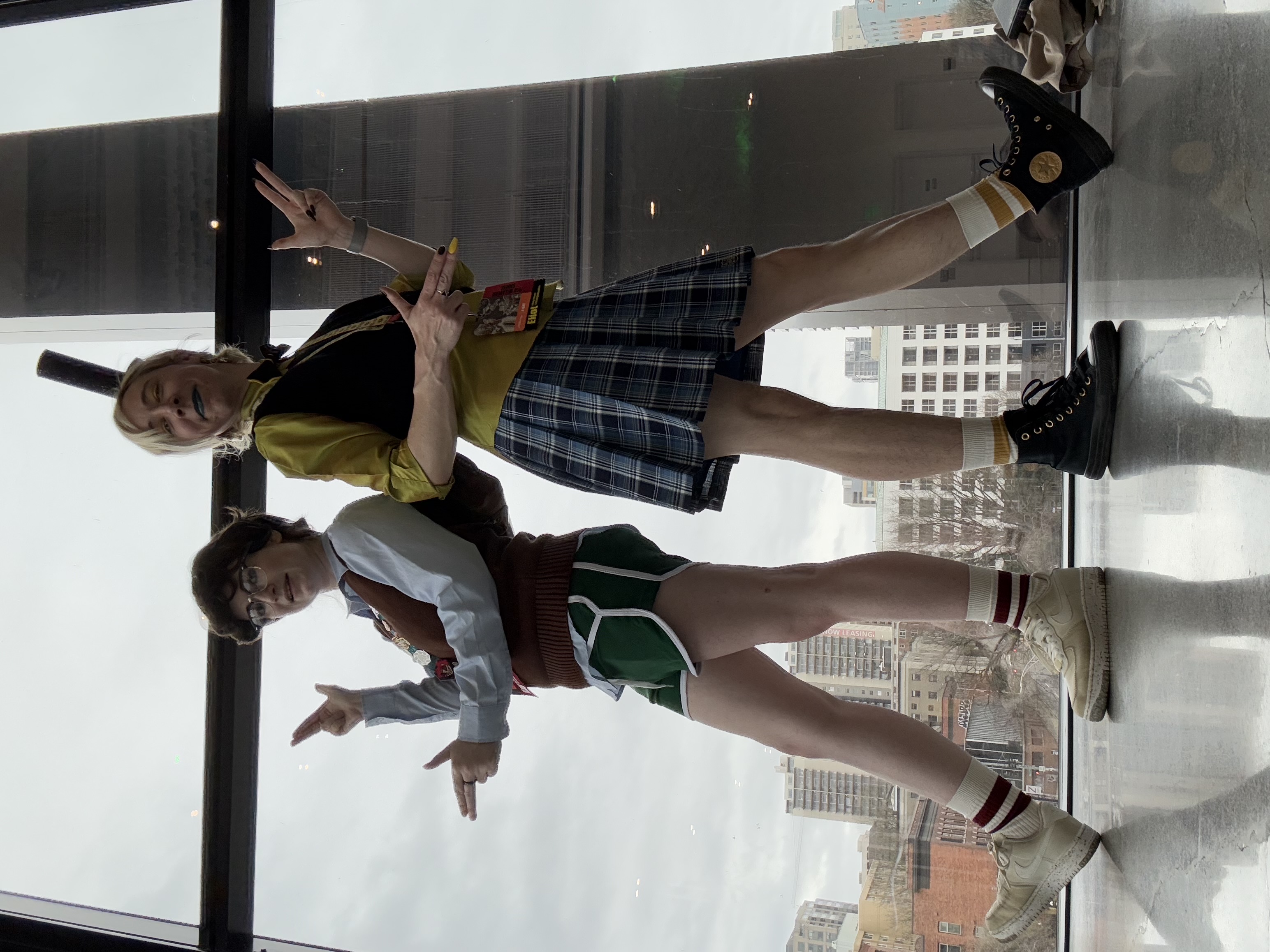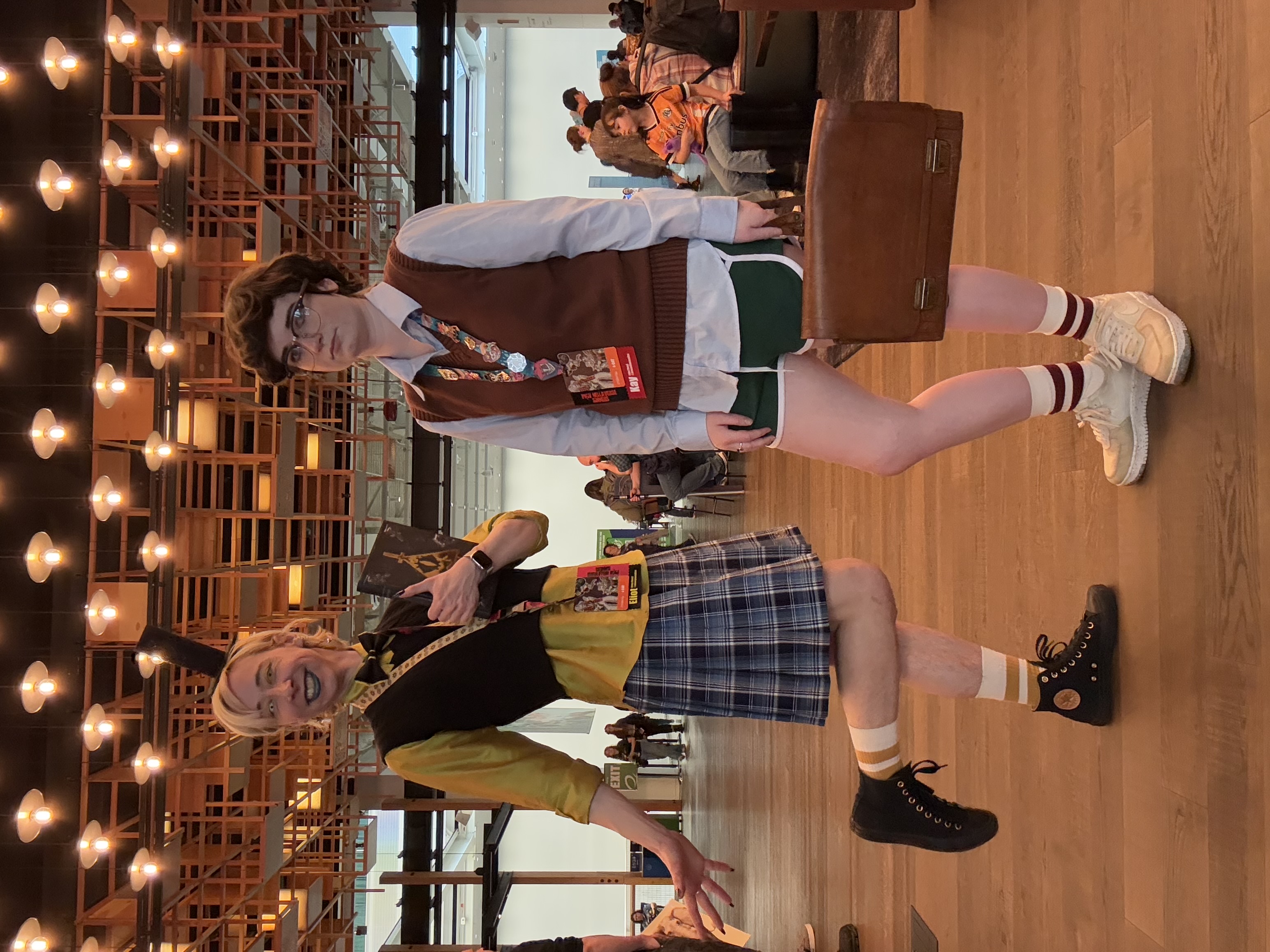 I cut individual "brick" pieces for the waist, then pressed and sewed them with the yellow folding under, so that the seams are hidden and the bricks are slightly raised off the reflective fabric. It has a nice dimensionality, exactly as I had in mind! Two of the bricks are welt pockets (one is obvious rainbow and one is hidden in a regular brick), which I learned how to make from the Alastor/Stolas vest, and I made an additional smaller breast pocket (measured to accommodate artist alley business cards specifically). The brick construction helped fix the waistline conundrum; the front points come down low enough to cover the waistband of my pants but I split the tails at the middle brick line so the waist/hip lines are much better from the back than a lower waist would've looked.