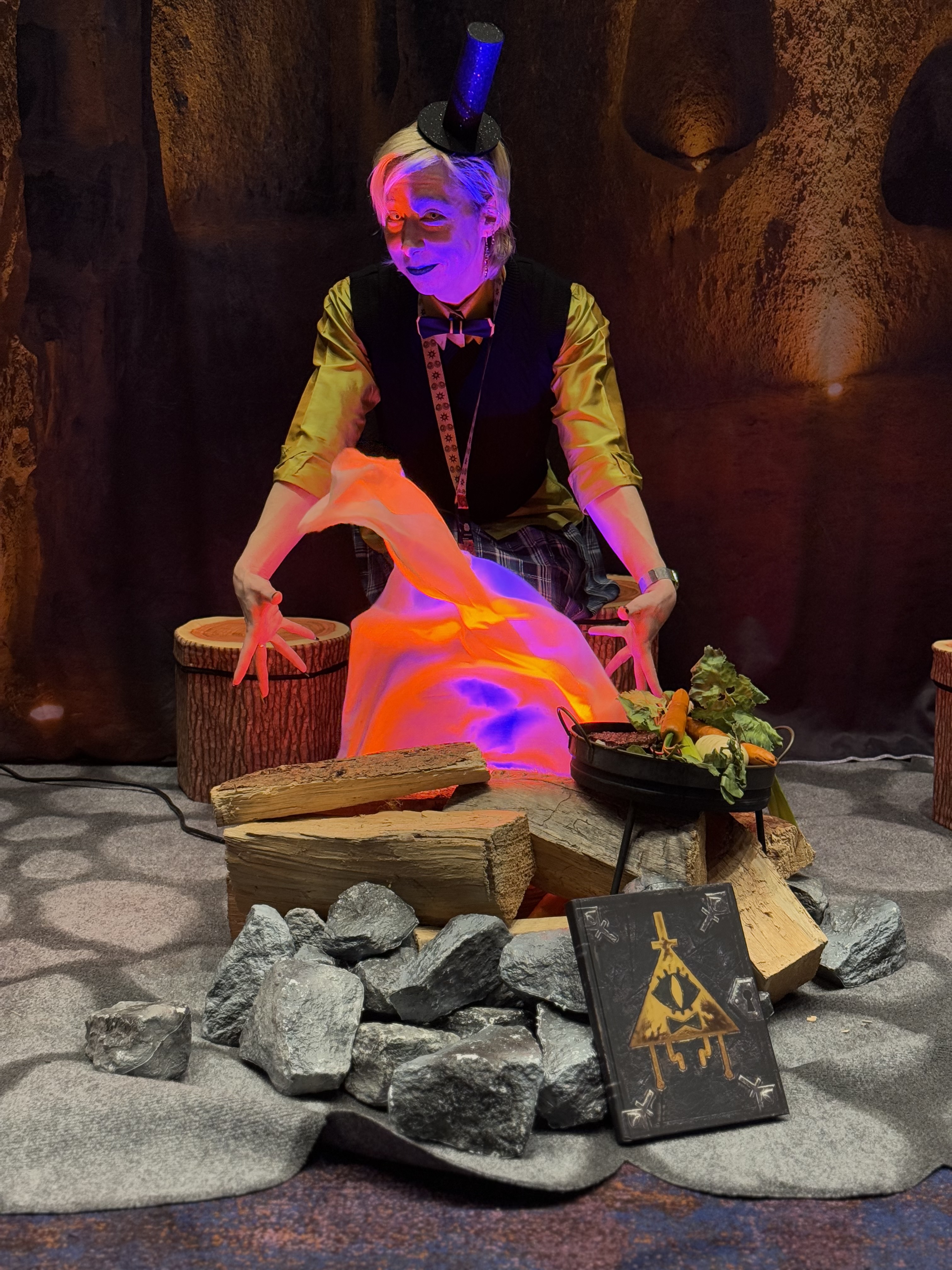 Anyway it's the end of 2024 and I agree to watch this show at last because my partner recommends it to me and she hasn't yet been wrong about shows I might like. I laugh gently at some of the jokes and I'm charmed by the seemingly unaffected sense of quirkiness, the mostly warm and human character moments. (There are some jokes that don't age super well, that feel a little cruel as I've aged into more sensitivity to certain things.) That said, I'm not, like, INTO it until Bill Cipher arrives on screen, which is exactly what anyone who knows my media taste would've naively predicted. He arrives heralded by a sharp increase in the Weirdness, not just the chanting backwards or the ... to the extent that one can be frightened by a decade-old cartoon for children, Bill Cipher does his best to immediately and actually threaten. His voice is disruptive, grating: a half-nasal whine that is also somehow a shout, impossible to do an impression of without speaking at a volume inappropriate in almost any space.