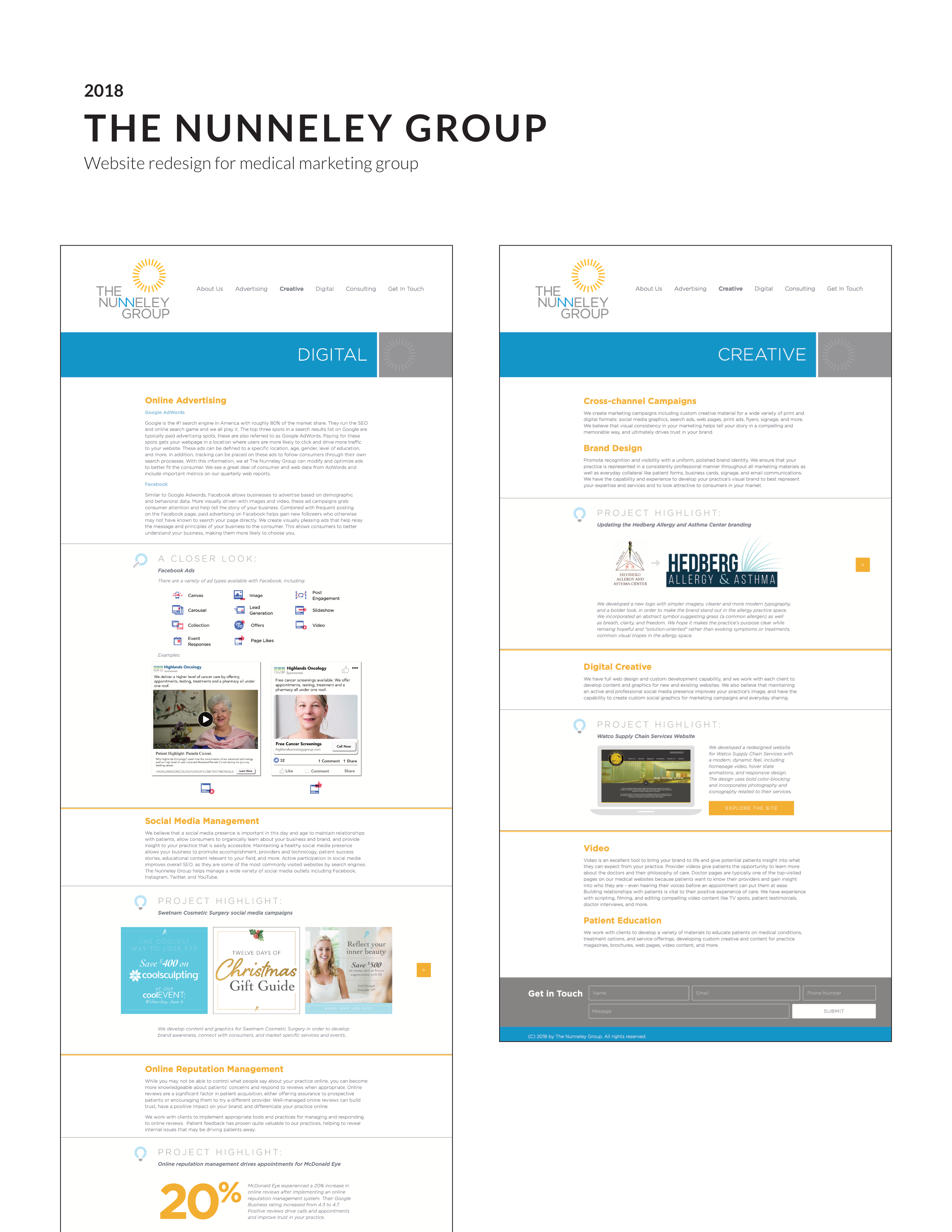 Designed websites, marketing collateral, and patient booklets for medical practices in a variety of specialties and markets. Managed relationships with print vendors and remote web developer.